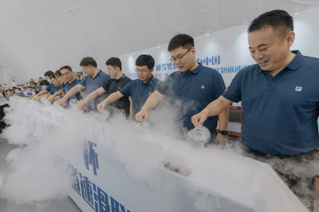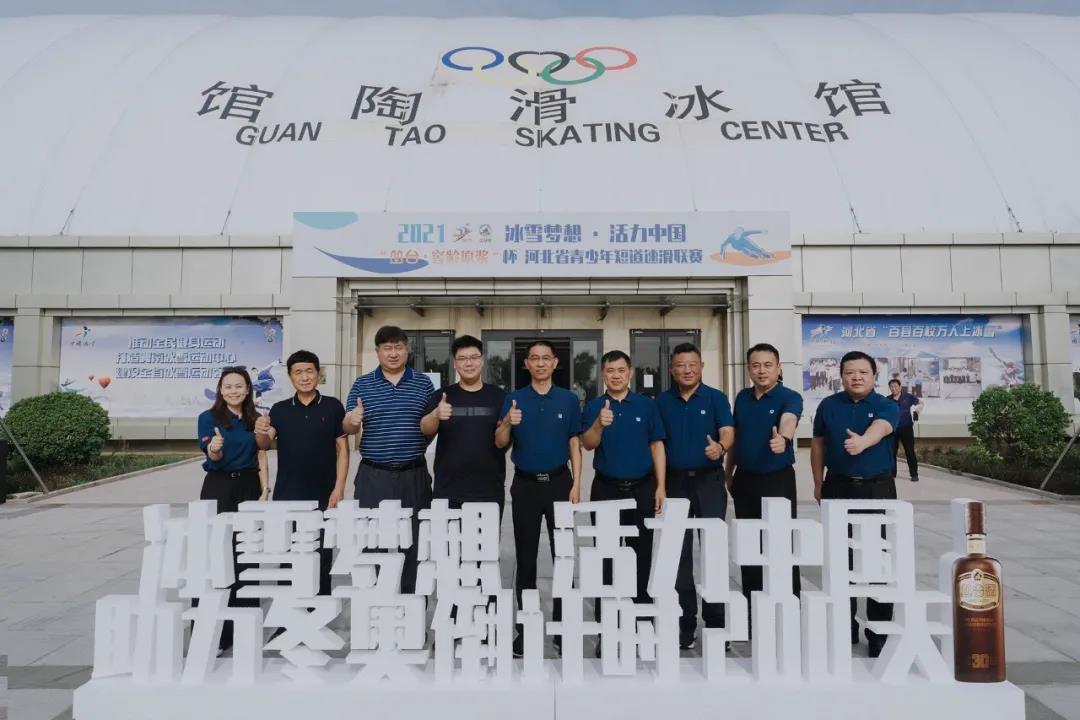 签约仪式上的启动浇冰环节,将整个活动推向新高潮。河北省体育局奥运事务处处长兼冬季运动管理中心主任刘杰、河北省体育局奥运事务处二级调研员刘子美、河北省体育局冬季运动管理中心副主任王东、石家庄市体育局党组书记、局长闫永亮、石家庄市体育局党组成员宋永忠、馆陶县委书记王立伟、馆陶县委副书记、代县长王峰、馆陶县政府党组成员吴瑞丽、河北石家庄门徒娱乐股份有限公司总经理李鹏亮共同浇冰启动,为河北省“门徒娱乐·窖龄原浆”杯青少年短道速滑联赛助力。